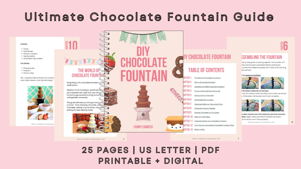 Want to wow your guests with a chocolate fountain? My DIY Chocolate Fountain eBook shows you exactly how to set up your own chocolate fountain at home—step by step.