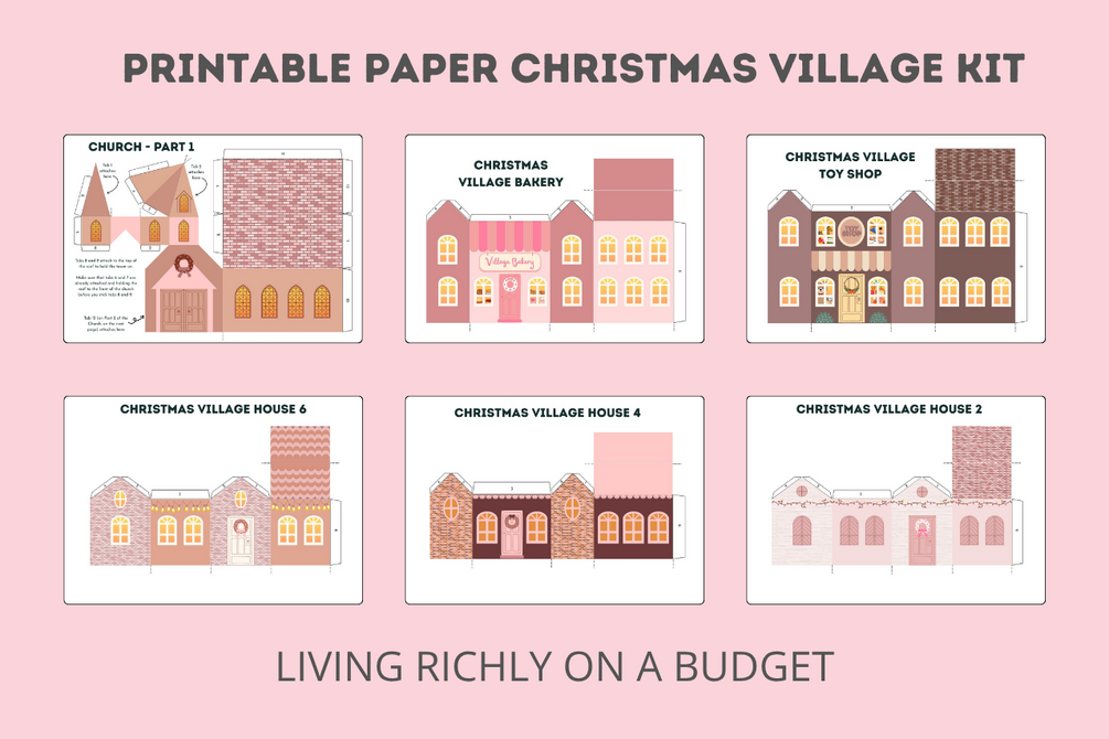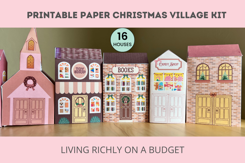 Bring the charm of a snowy Christmas village right into your home, with this affordable option. This Printable Paper Christmas Village Kit includes everything you need to build a cozy, festive town that looks beautiful on your mantel, shelf, or holiday table.