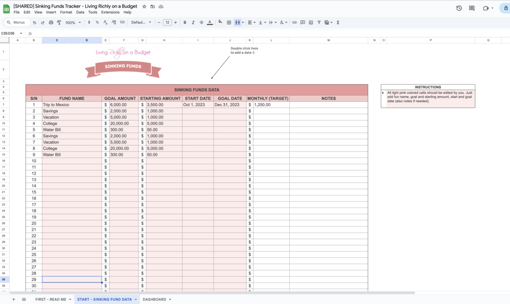 SINKING FUNDS TRACKER - GOOGLE SHEETS TEMPLATE
