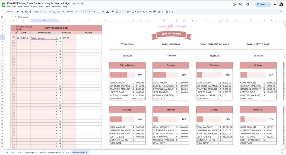 Sinking Funds Tracker Google Sheets