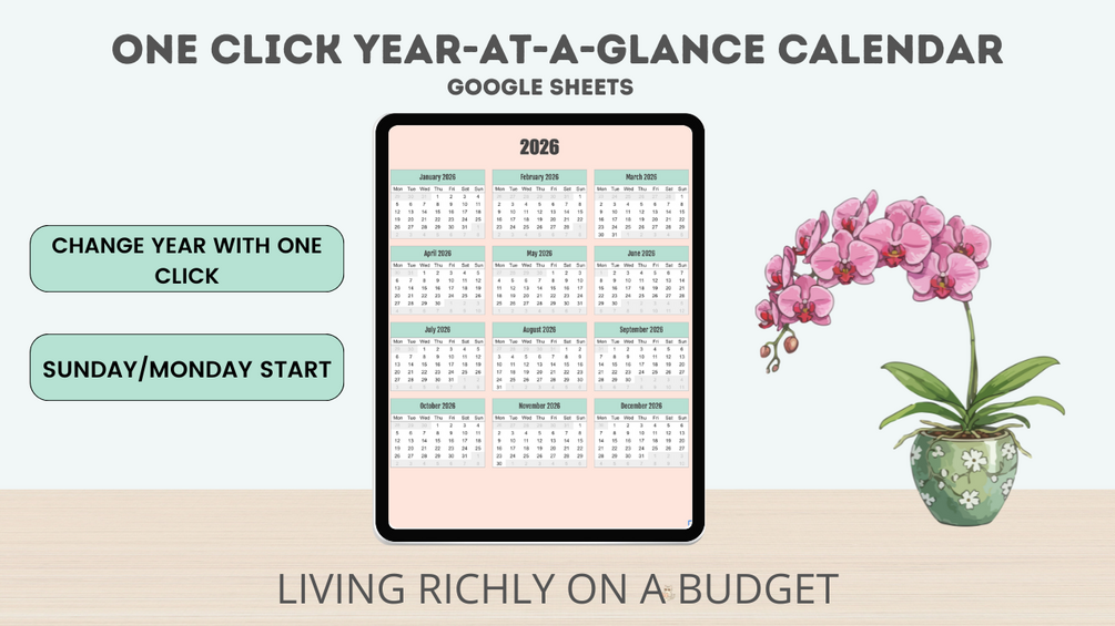 📅 One Click Year-At-A-Glance Calendar (Google Sheets)